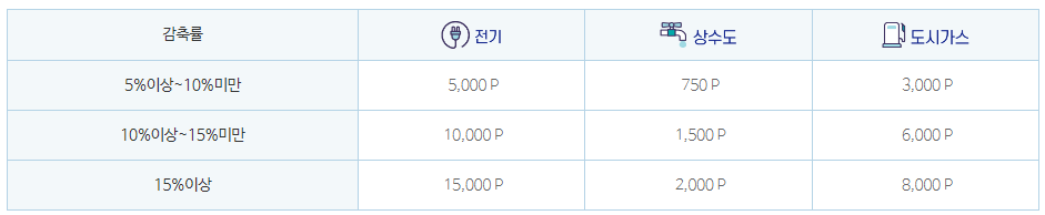 표준 사용량 인센티브 : 탄소중립포인트 에너지 참여자의 평균 에너지 사용량 대비 50% 이하로 사용했을 경우 지급 ( 1 탄소포인트 = 최대 2원)